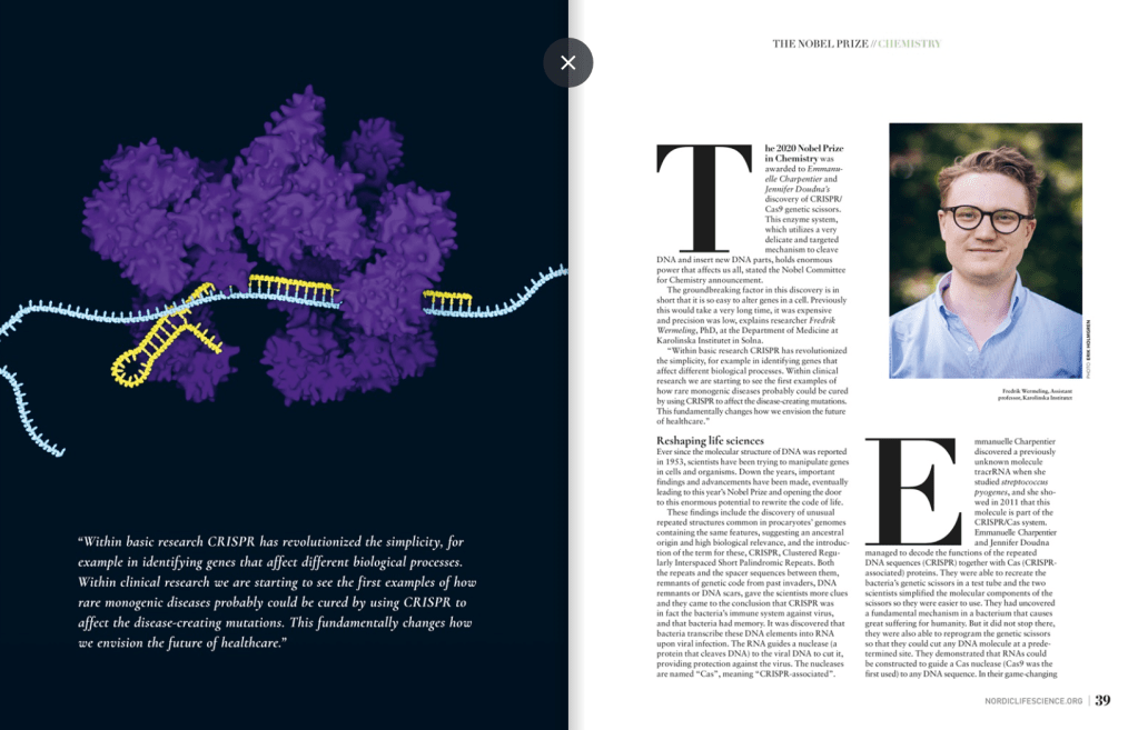 2021 / Interview for Nordic Life Science about the Nobel Prize in Chemistry for CRISPR (p. 38-43 here in English):