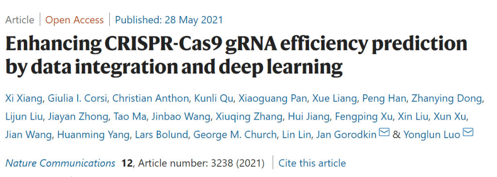 Very interesting study from Xiang X et al. about gRNA efficiency prediction, including a web based software CRISPRon for gRNA design (https://rth.dk/resources/crispr/crispron/).